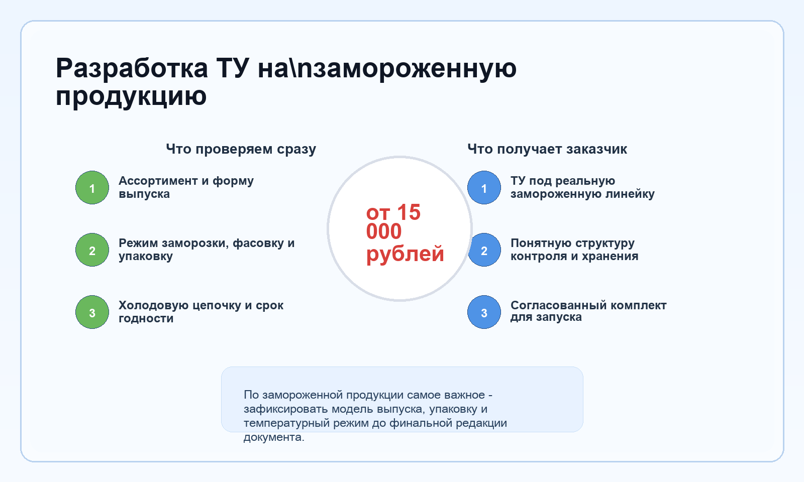 По теме «ТУ на замороженную продукцию» в Новокузнецке разложим оформление по шагам: что подготовить на старте, где чаще всего возникают возвраты и как пройти процесс без лишних пауз между этапами.